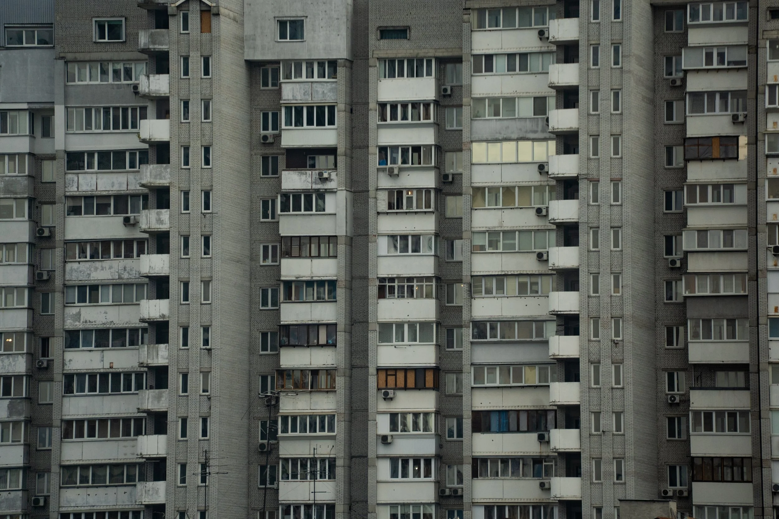 01 October, 2025 - Kyiv, Kyiv Oblast, Ukraine: The sight from my hotel room of large looming apartment buildings. Such buildings are frequently struck by Russian drones and missiles during air raids.